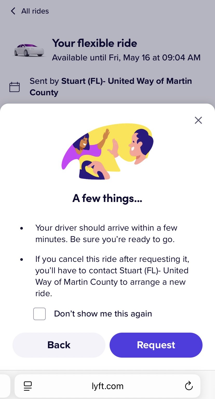 After clicking the link, you'll be redirected to a Lyft page in your browser.
